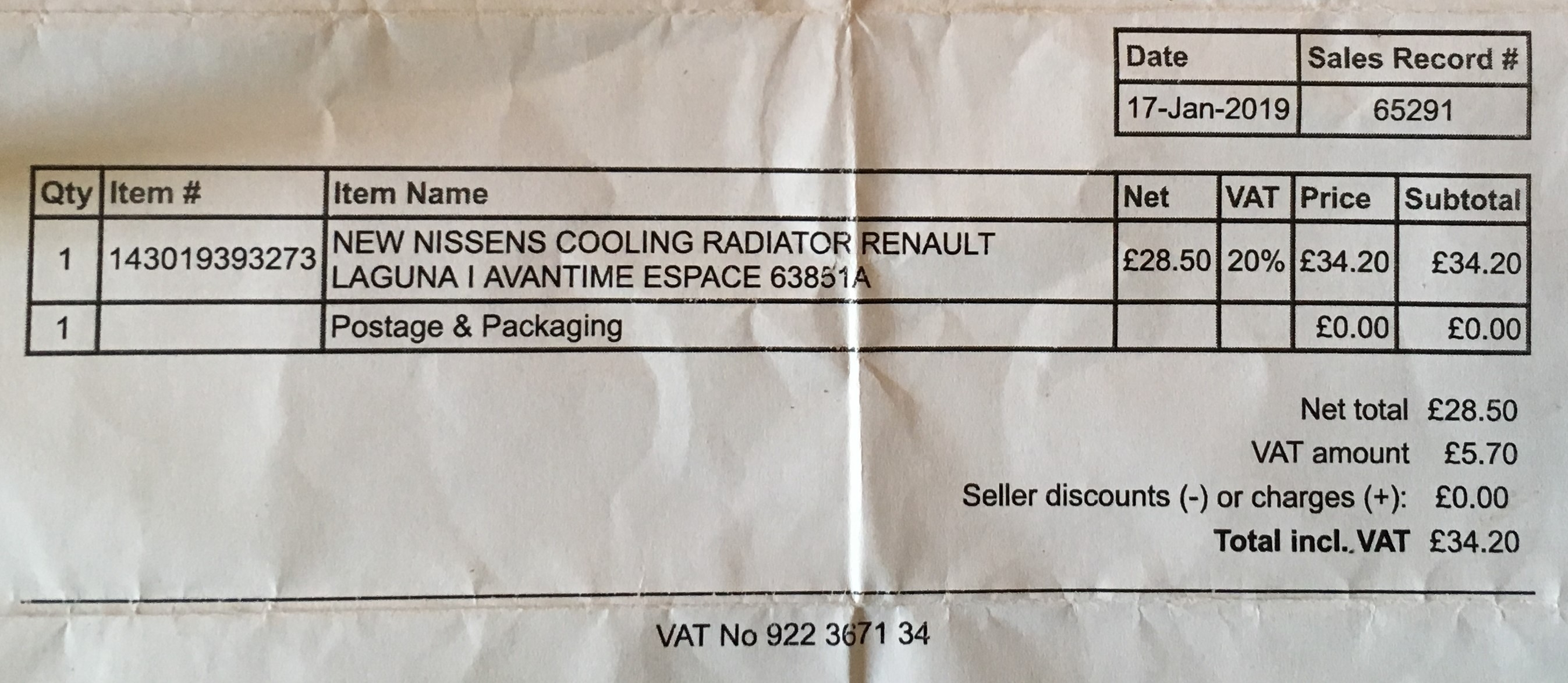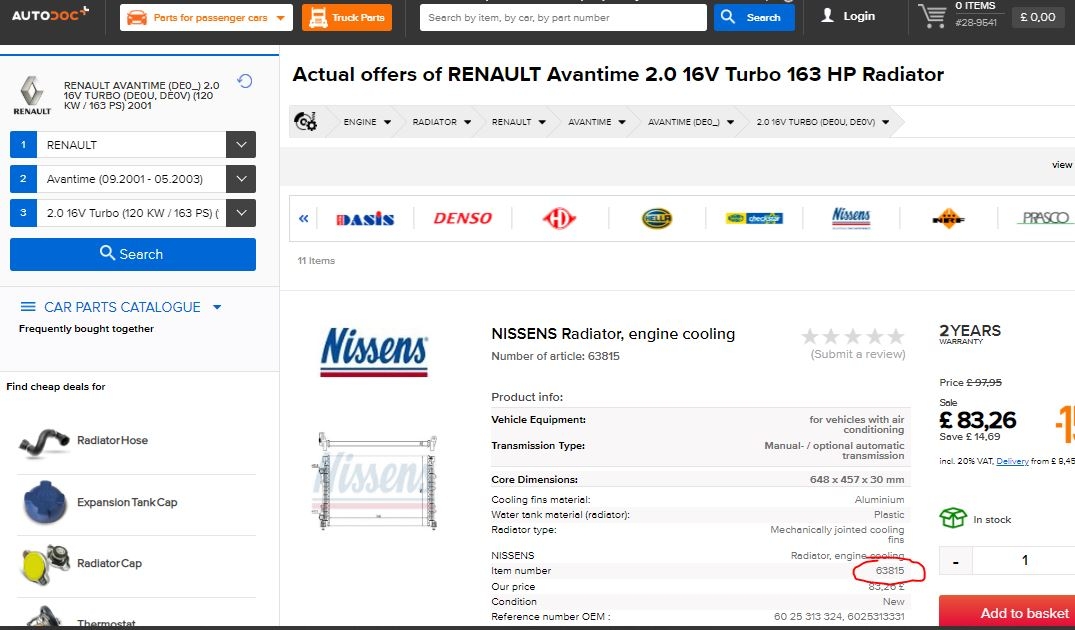 Pretty sure this will be a standard Renault shelf part. Cant complain about a radiator that lasted 17 years and 130000 miles, At 70 or 35 quid almost a service part.