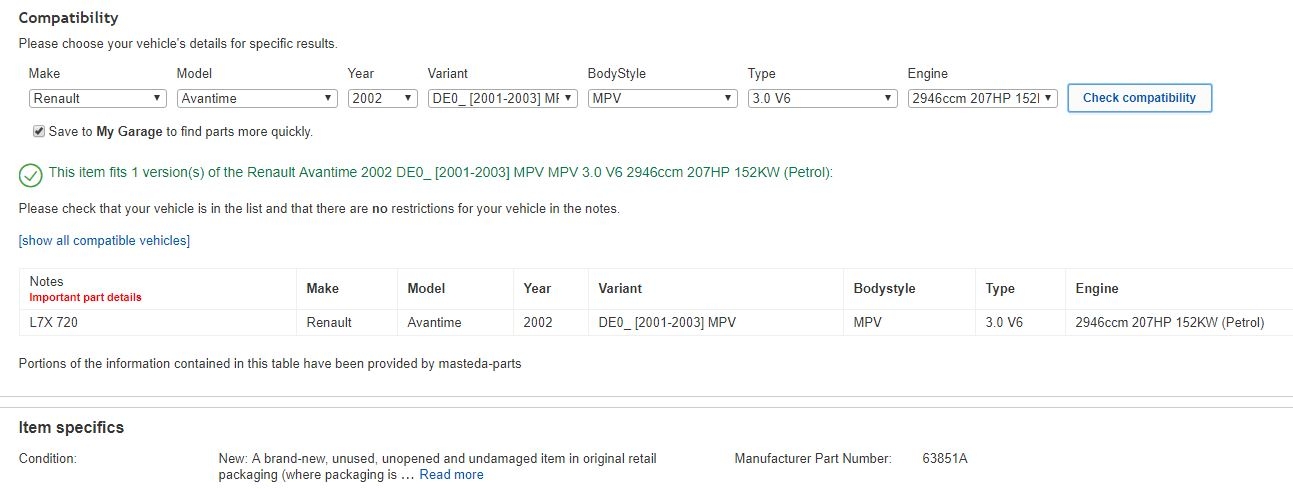 Righto have ordered 63815, not 63851 this time. Talk about swiss cheese holes aligning. Both being sold as Avantime& espace fitments, beware of this folly fellow forumters! Save yourselves, its too late for me. What are the chances etc. Will be here on Tuesday. Might try and fit it myself next Friday, weather permitting. Hey ho/hurumph.