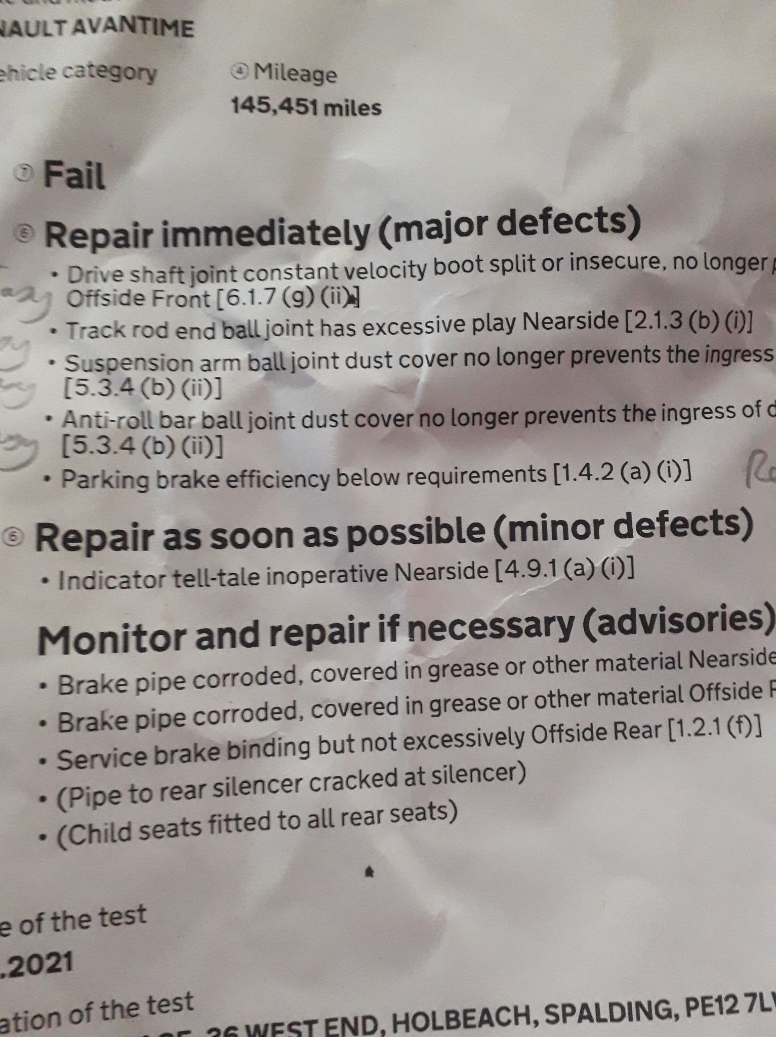 Must be my misunderstanding I thought the only items that can fail on presentation are linked to dangerous failures , so any torn gaiter or bush that fails and then could cause a crash i.e steering and tracking ball joints, cv's.